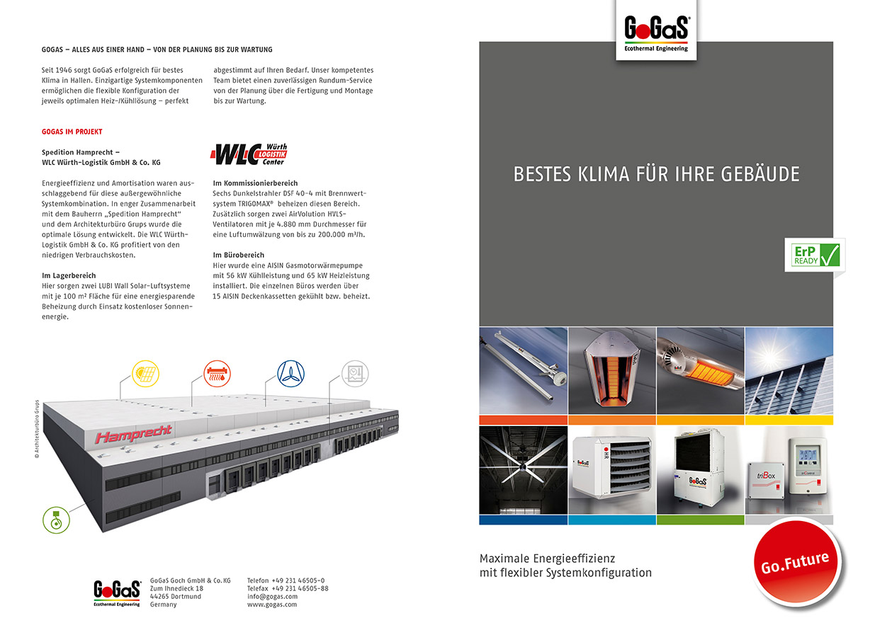 Für die fast fertig gestellte Logistikhalle in Kemmeten haben wir für die Fa. GoGas eine Visualisierung der Halle erstellt. Die Fa. Gogas wird das Projekt in zukünftigen Broschüren als Referenzobjekt anführen. Auszug aus dem Prospekt: